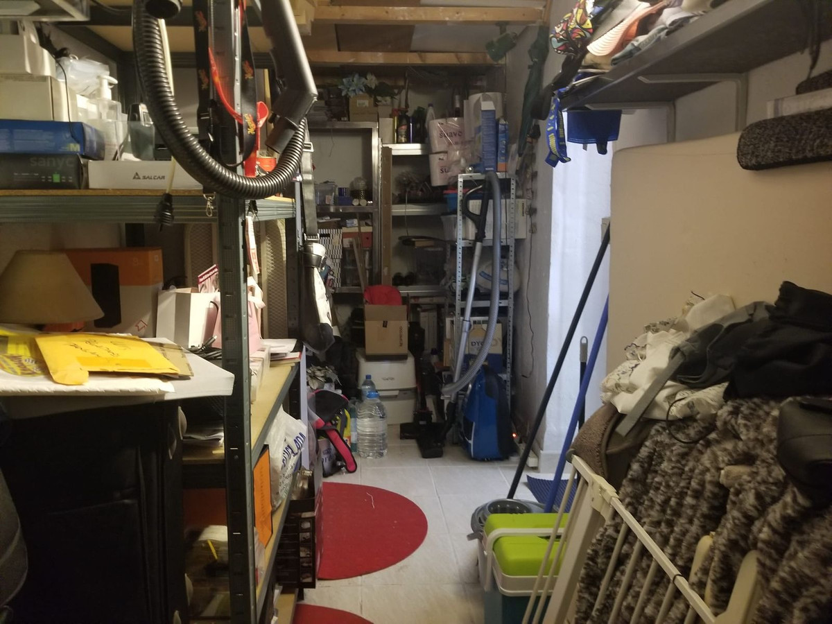 This apartment has a huge front terrace and good, easy access to the road. The terrace enjoys shade and light and the outside space is an easy extension to comfortable living. Space for 3 vehicles. There is also a storage room on entry to your left. The open kitchen is easily accessible from the lounge and the 2 bedrooms are to the right with the bathroom. Mijas Golf is at an easy distance to both Fuengirola and La Cala de Mijas and supermarkets and shops and bars and restaurants are all an easy drive away. The urbanisation has a large pool and is very well maintained. There is a children`s park. There are also extensive walks through green belt areas throughout Mijas Golf. A great place to enjoy all year round or to use as a very comfortable second residence.