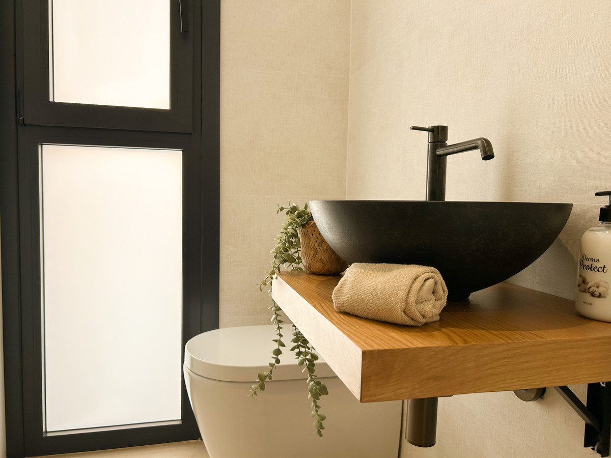 Cette maison comprend trois chambres, chacune dotée d'une salle de bains privative et orientée à l'est, ce qui lui assure une belle luminosité en début de journée. Les finitions sont signées Porcelanosa, témoignant d'un souci constant de la qualité et du design. Elle intègre également un système domotique permettant de contrôler facilement différents aspects de la maison.