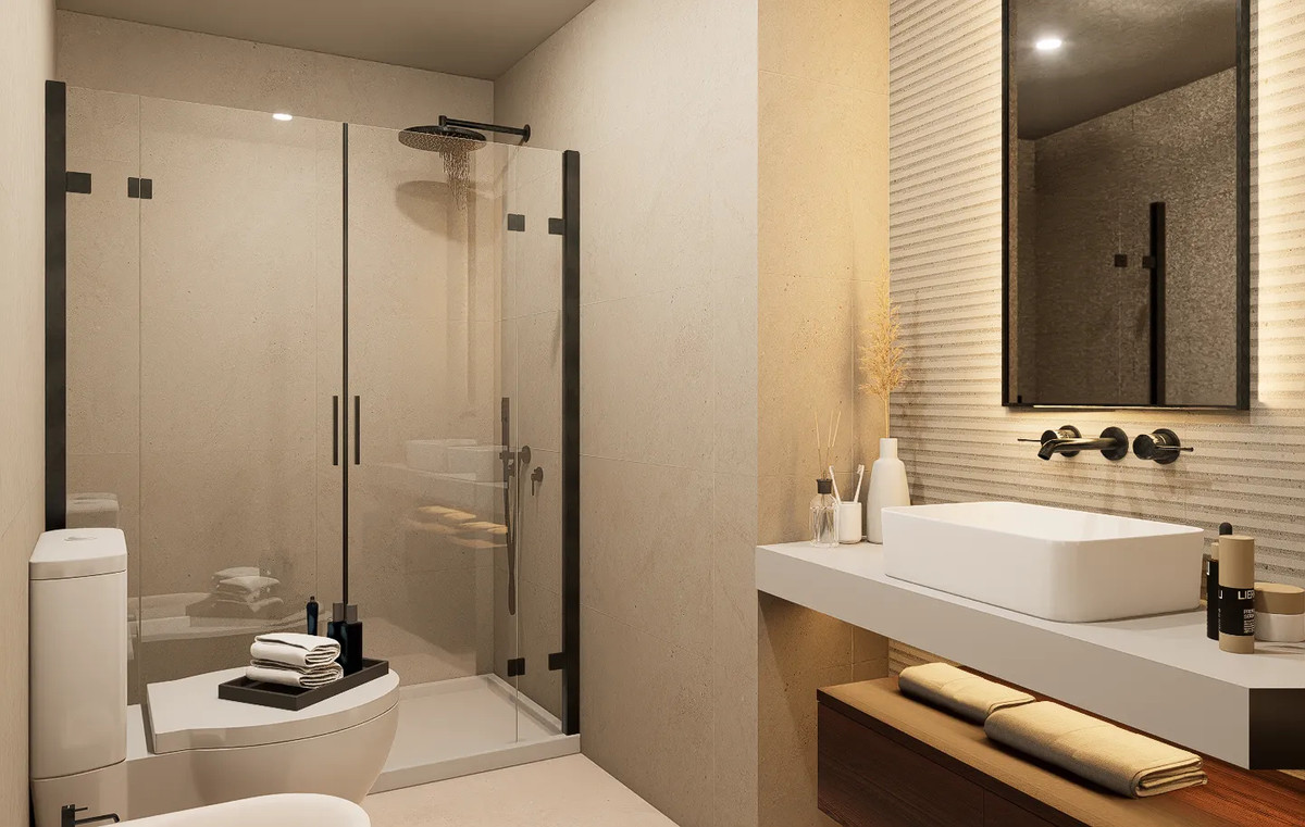Chaque logement a été conçu pour optimiser l'espace et la lumière naturelle. Profitez d'un design intérieur fonctionnel et élégant, avec des finitions haut de gamme de marques renommées, gage de qualité et de confort absolus.