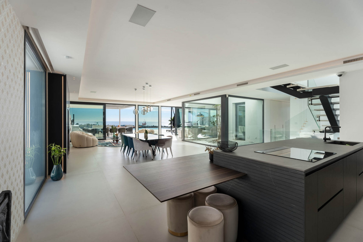 Cette villa d'architecte à Paraiso Alto se présente comme une résidence contemporaine conçue pour ceux qui recherchent intimité, grands espaces et une connexion directe avec la nature environnante. Sa position dominante offre des vues imprenables sur le golf d'El Paraíso, la Méditerranée, Gibraltar, la côte africaine et le mont La Concha depuis différentes pièces et espaces extérieurs, créant ainsi un cadre visuel exceptionnel.
