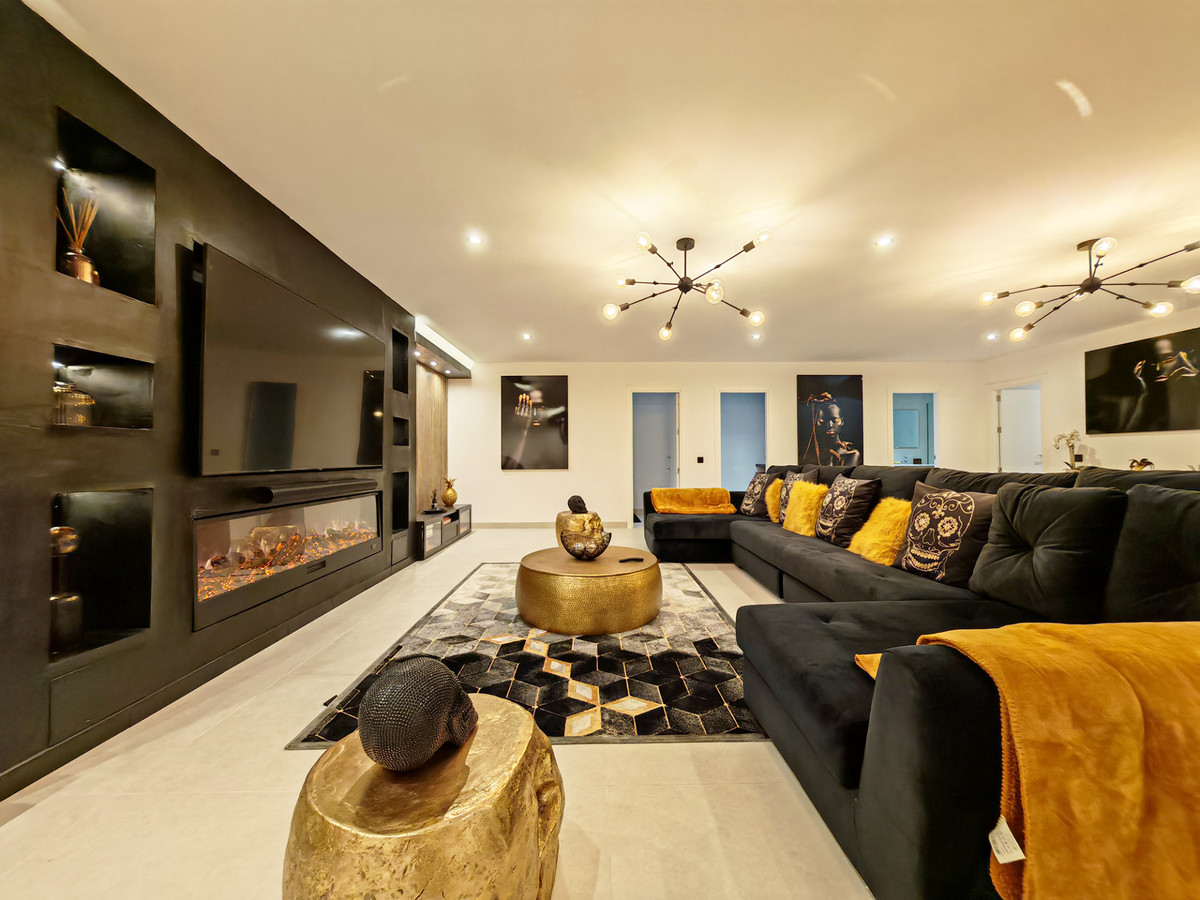 Villa à vendre à La Resina Golf, Estepona, offrant 5 chambres, 4 salles de bains (dont une suite parentale), une orientation ouest, une piscine privée, un garage double et un jardin privatif. Surface habitable : 308,46 m², terrain : 521,21 m², surface utile : 308,46 m², terrasse : 95 m². Ce logement offre les prestations suivantes : accès direct au golf, climatisation, entièrement meublé, cuisine équipée, buanderie, cheminée, jacuzzi, sous-sol, chambre d’amis, débarras, salle de sport, alarme, solarium, entrée sécurisée, double vitrage, interphone vidéo, tout neuf, salle à manger, barbecue, service de sécurité 24h/24, toilettes invités, terrasse privée, cuisine équipée, salon, bureau, vue sur la montagne, vue sur le golf, piscine chauffée, système d’irrigation automatique, domotique, système audio surround Dolby, buanderie, internet Wi-Fi, terrasse couverte, placards intégrés, vue sur le jardin, vue sur la piscine, vue panoramique, salle de cinéma, chauffage au sol (salles de bains), cave à vin, à proximité d’une aire de jeux pour enfants, à proximité de la mer/plage, à proximité du golf, terrasse non couverte, salle de jeux, portes vitrées, salle à manger séparée, cuisine ouverte, balcon, système de refroidissement au plafond, à proximité des écoles, appartement d’invités, au sein du complexe de golf, bureau et animaux domestiques admis.